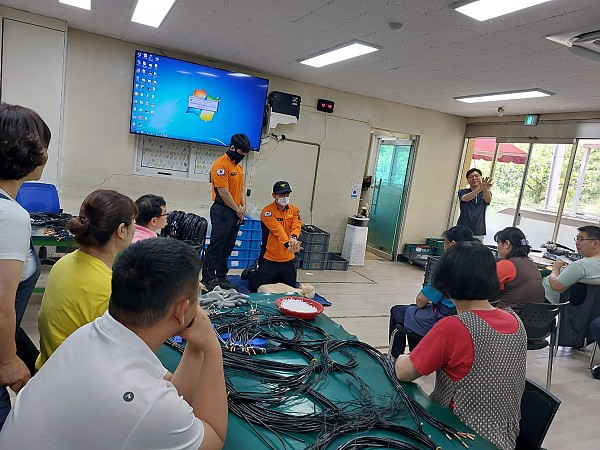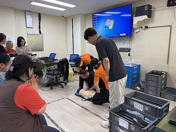 20250617 동읍소방서 연계 소방안전교육 및 대피훈련 페이지 정보 작성자 예향 작성일25-06-18 08:24 조회971회 댓글0건 이전글 다음글 목록 본문 동읍소방서와 연계하여 화재 발생 시 신속하고 체계적인 대응 조치에 대하여 훈련으로 대피훈련 및 심폐소생술 교육을 하였습니다. 불이났을때 "불이야!" 외치며, 낮은 자세로 교사들의 안내에 따라 밖으로 대피하고, 심폐소생술과 소화기 사용방법을 익히기도 하였습니다. 주기적인 훈련을 통해 재난상황 발생에도 피해를 최소화하고 이용자분들의 보호와 안전에 더욱더 노력하는 예향복지센터가 되겠습니다. 댓글목록 등록된 댓글이 없습니다. 이전글 다음글 목록